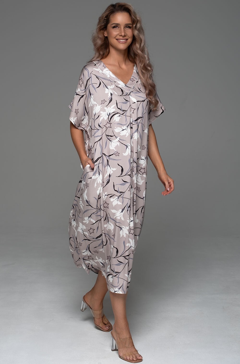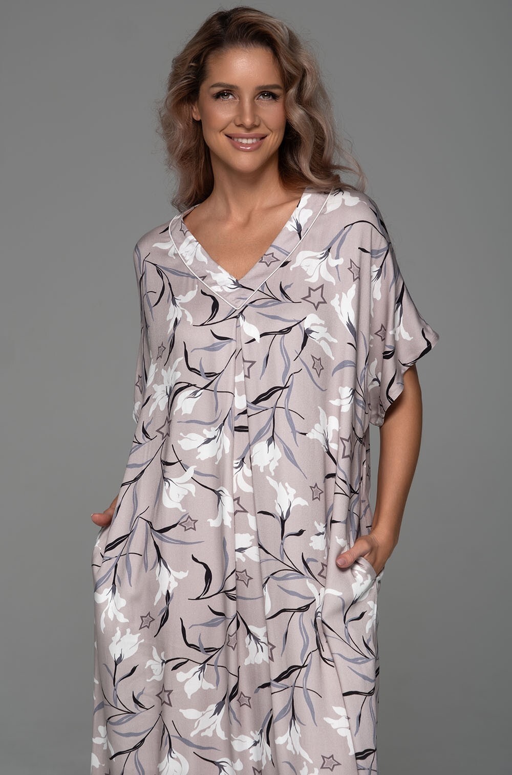 Длинная сорочка Mia-Amore с короткими рукавами выполнена из смесового вискозного полотна, имеет свободный силуэт и V-образную горловину.