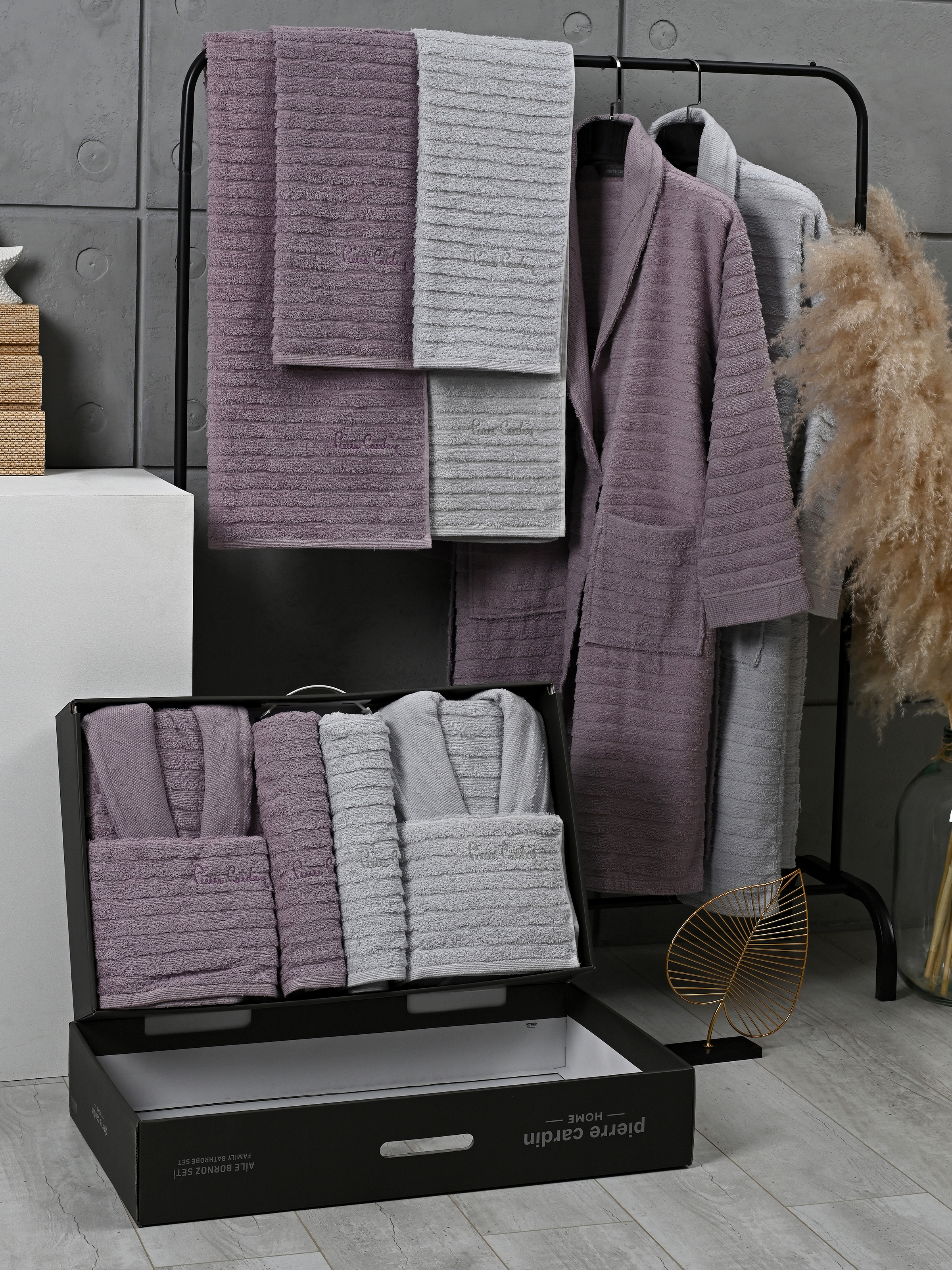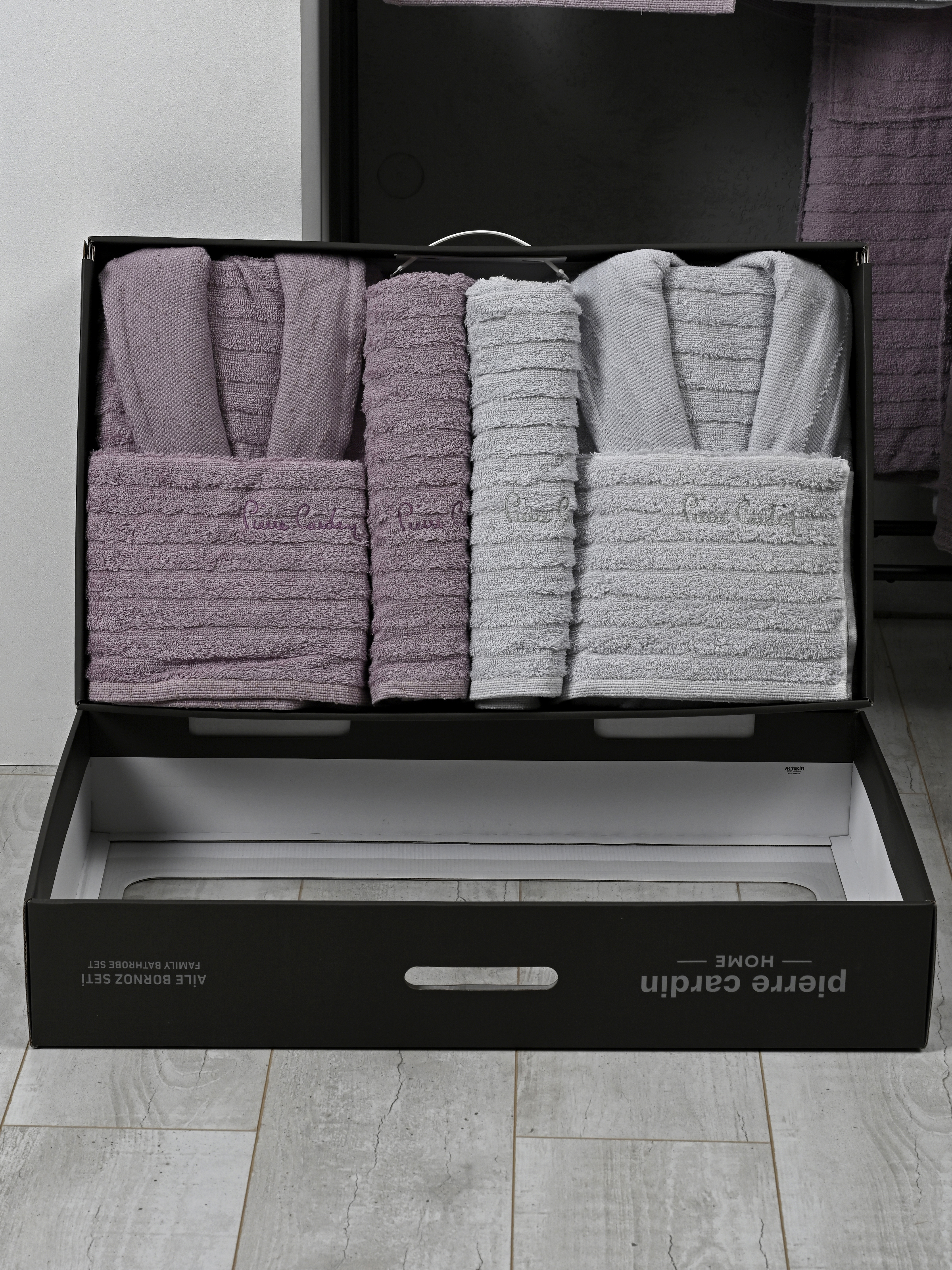 Халаты и полотенца украшены вышивкой на груди PIERRE CARDIN