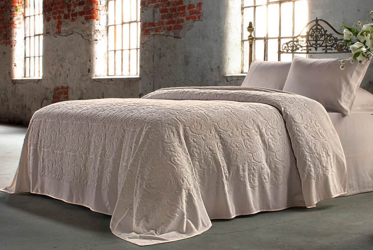 Жаккардовое покрывало Tivolyo (Тиволио) BAROC очень уютное: рельефный мягкий жаккардовый узор в виде завитков выступает на фоне в мелкую вафельку, - на это покрывало хочется прилечь или просто провести рукой по замысловатым изгибам узора. В набор входят две наволочки из сатина размером 50х70 см., украшенные стильной тонкой ленточкой, а также простынь.
