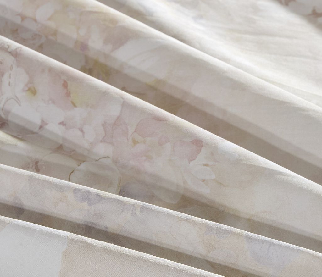 Легкий, воздушный узор вышит на безупречно белой ткани пододеяльника, а изящный крой дополнен оливковым оттенком компаньонной ткани, что вместе создает элегантный образ.