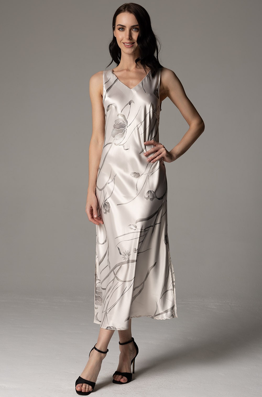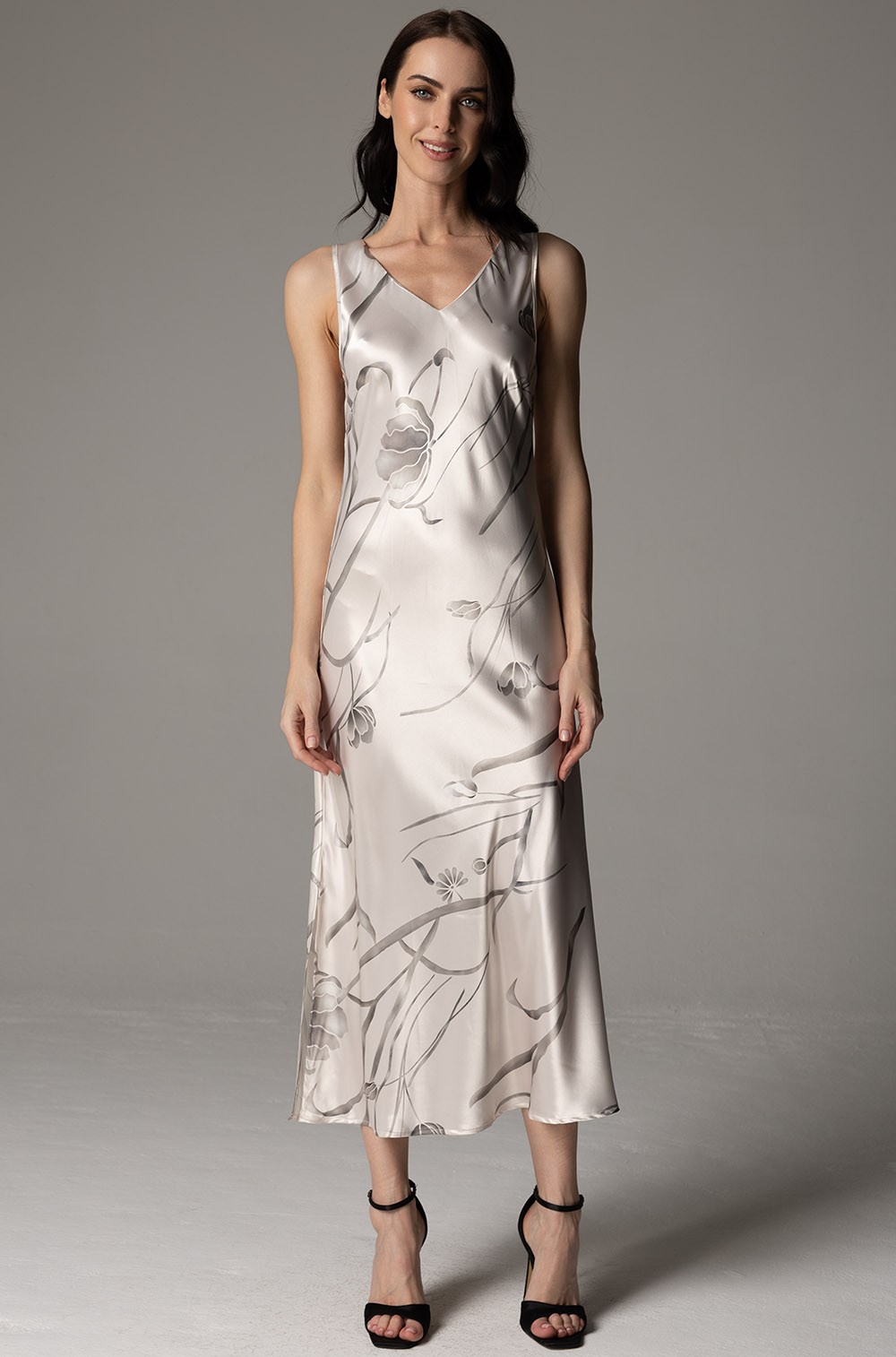 Классическая длинная сорочка Mia-Amore с вертикальными рельефами и широкими бретелями выполнена из принтованного смесового шёлка.